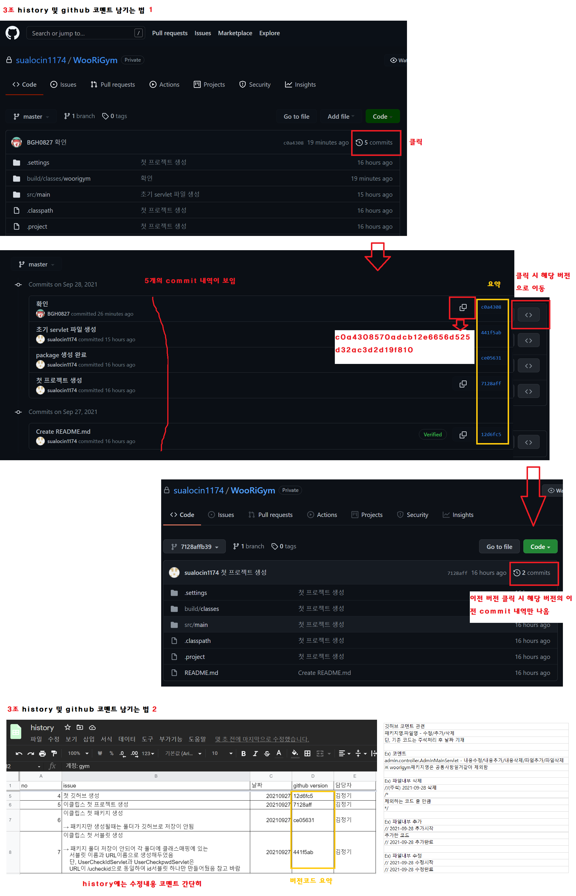 우리 조원들이랑 상의한 History 남기는법