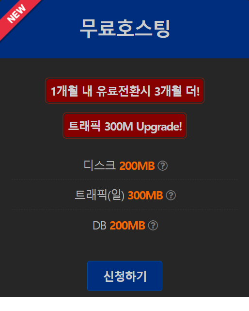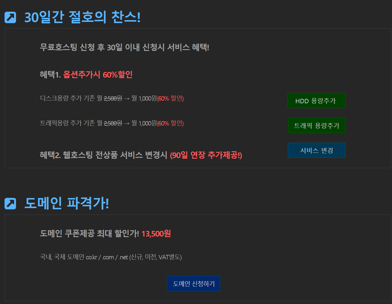 위의 무제한 웹호스팅은 유료이니 헷갈리지 말 것!
