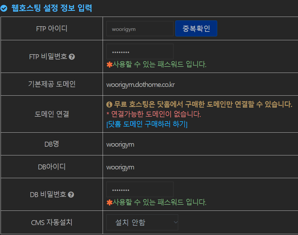 FTP 아이디는 내 닷홈 로그인 아이디가 적혀있어서 당황했는데,