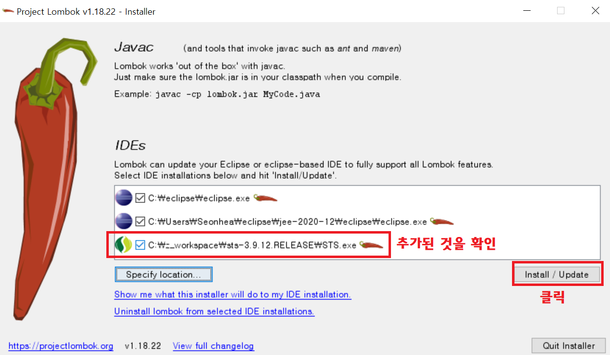 pom.xml에 코드 추가한다고 끝이 아닙니다. lombok 사용하려면 설치작업이 필요한게 lombok의 단점 중 하나입니다.