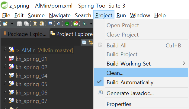 2. 상단 메뉴바 Project - Clean