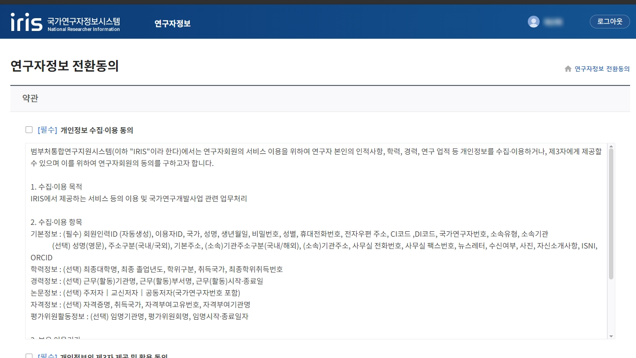 국가연구자번호를 발급하려고 했는데 NTIS에서 IRIS로 이관되었다고 해서 해당 사이트도 가입 후