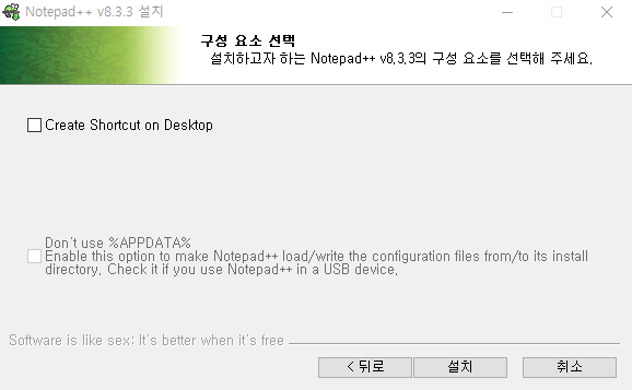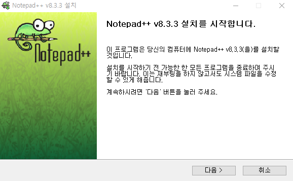 Notepad++ 설치가 완료되어 제대로 열리는 것까지 확인했습니다