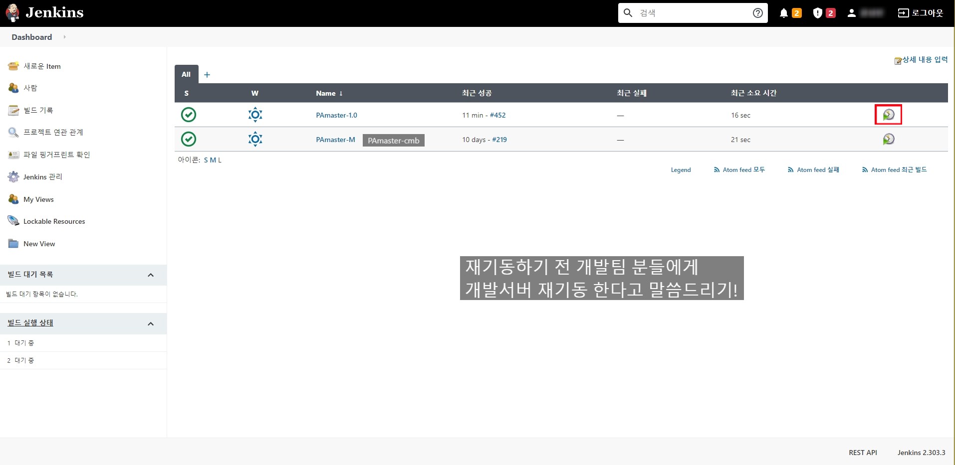 재기동할 개발서버 url 클릭