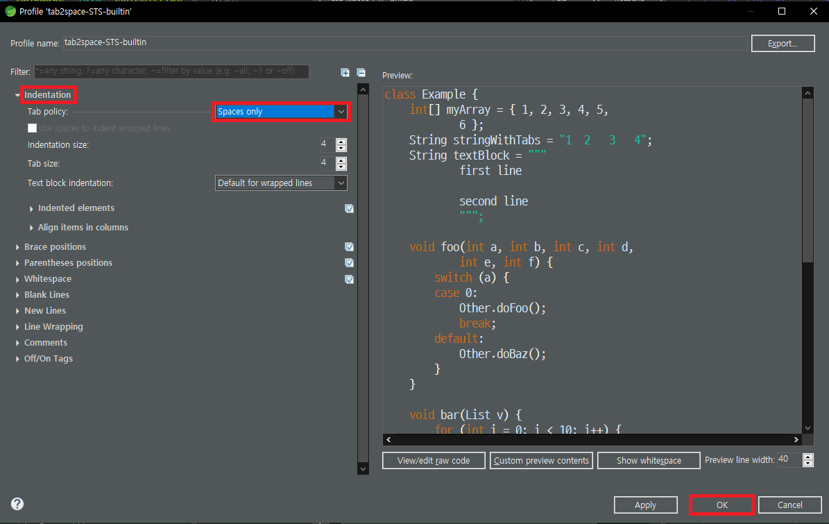 일단 tab2space-STS-builtin 로 입력했습니다.
