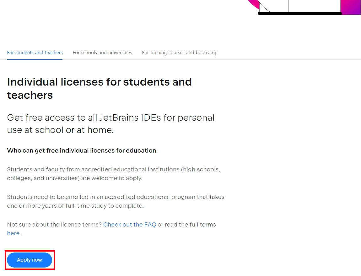 Learn or teach how to code with best-of-industry tools from JetBrains. Free Educational Licenses for JetBrains' tools.