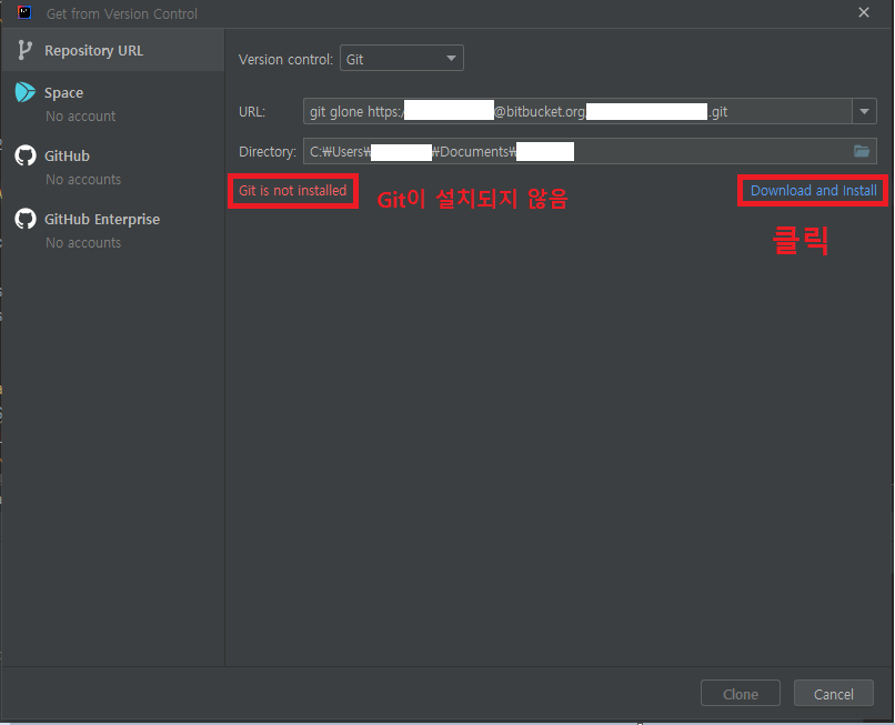 만약 Git is not installed 라는 메시지가 떠 있다면, 오른쪽에 Download를 눌러 Git을 설치해준다