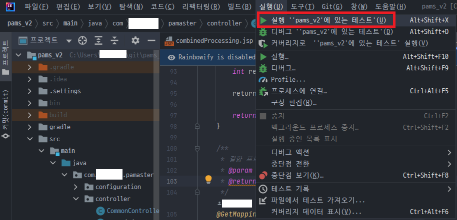 또는 프로젝트 우클릭 - 실행