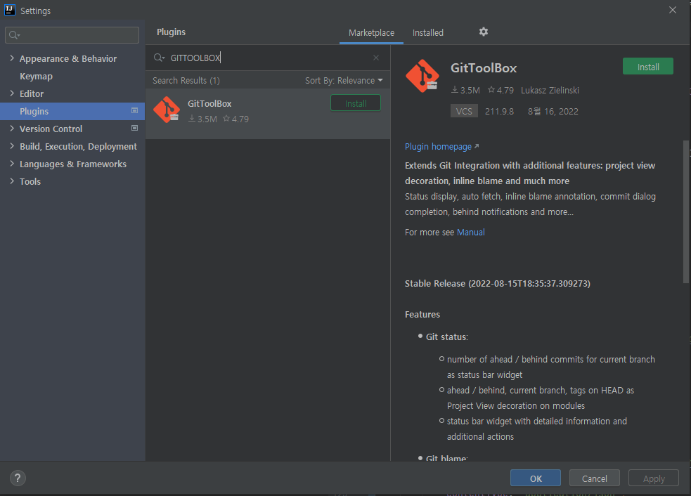 IntelliJ 인텔리제이 플러그인 깃툴박스 GitToolBox