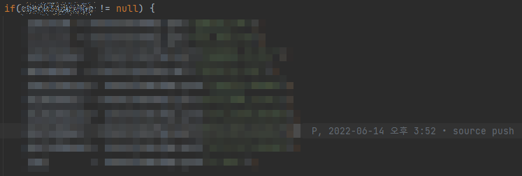 코드를 클릭하면 이렇게 마지막 commit한 사람(예: P), 일시가 적혀있다.