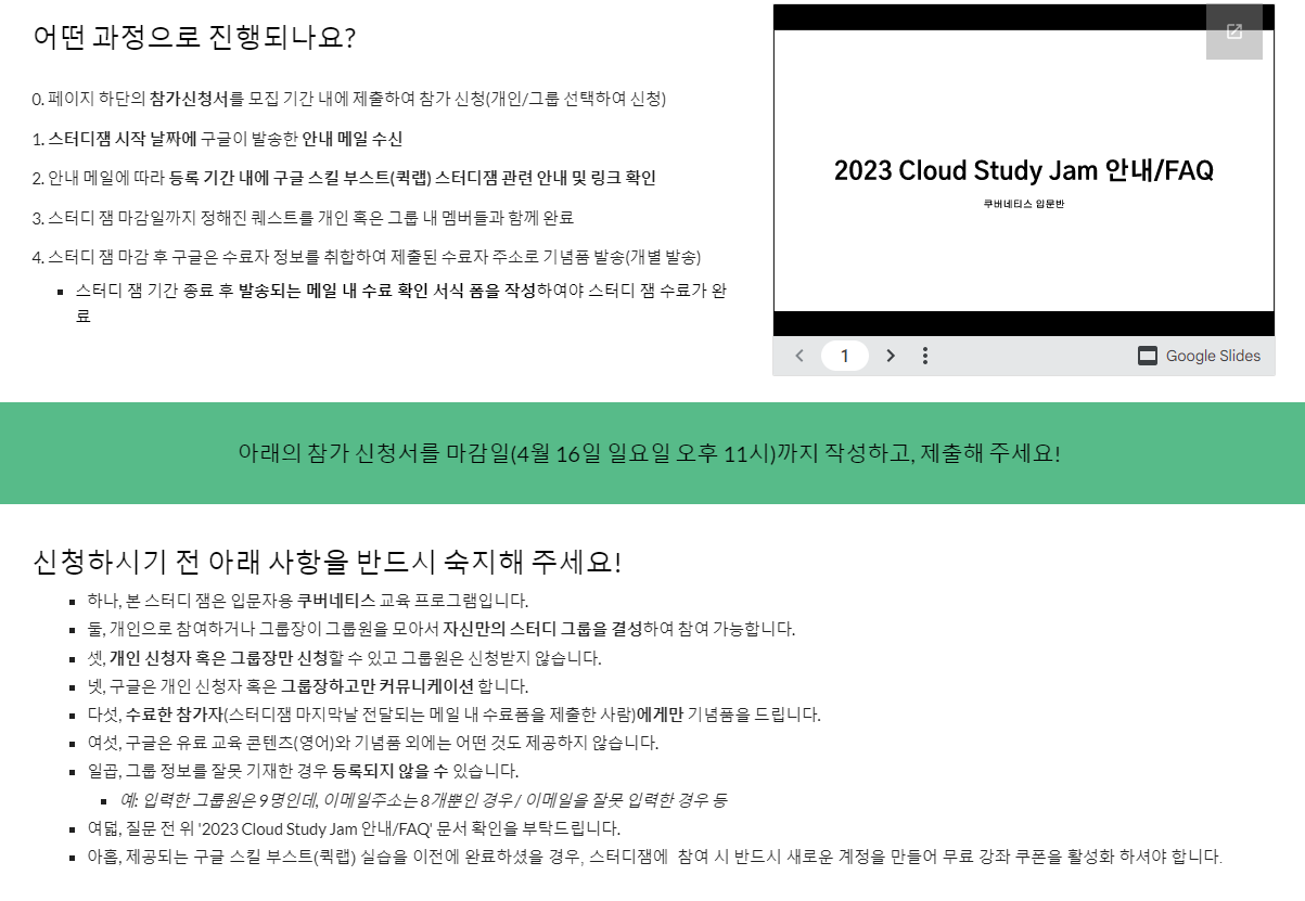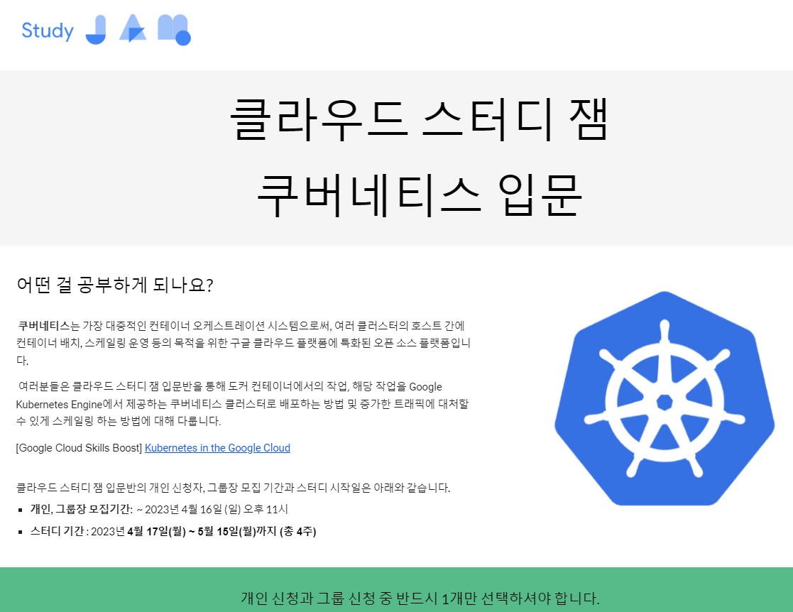 구글 클라우드에서 약 한달간 진행하는 쿠버네티스 스터디에 참여하게 되었습니다