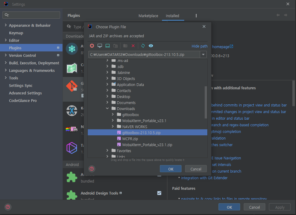 위에서 다운받은 GitToolBox 무료버전 zip 파일 선택